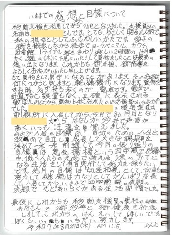 Y様の手紙 ~移動支援ご利用中のお客様より~